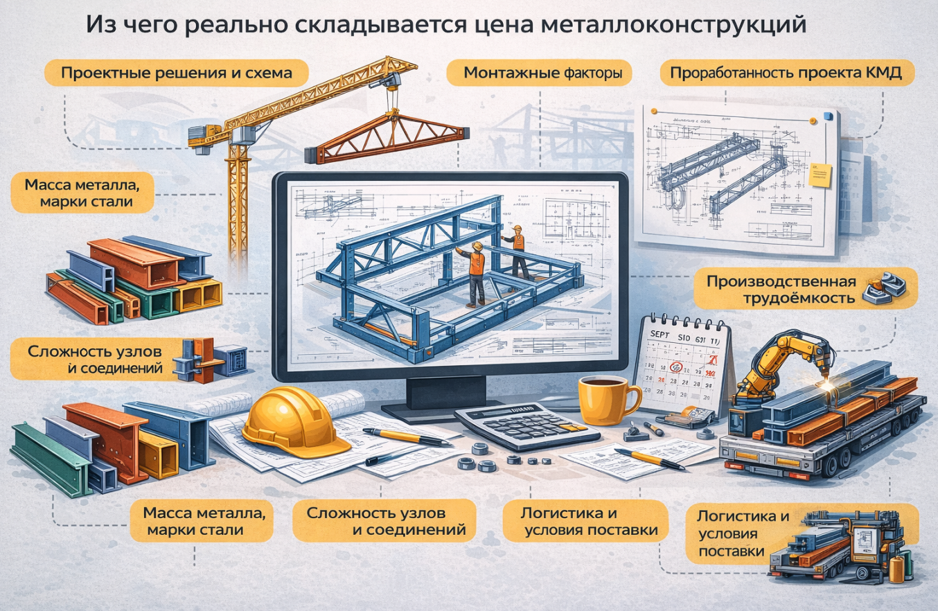 Цена металлоконструкций — это не просто стоимость металла. Это отражение проектных решений, степени проработки, сложности изготовления и условий реализации. Чем больше ясности и фиксированных решений на старте, тем спокойнее и прозрачнее формируется цена, а сравнение предложений становится корректным.